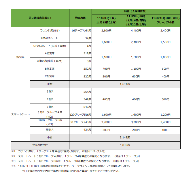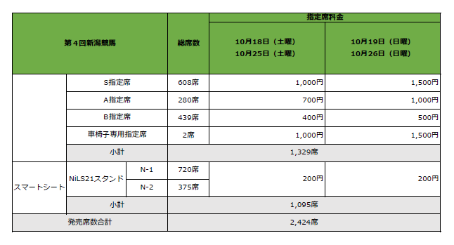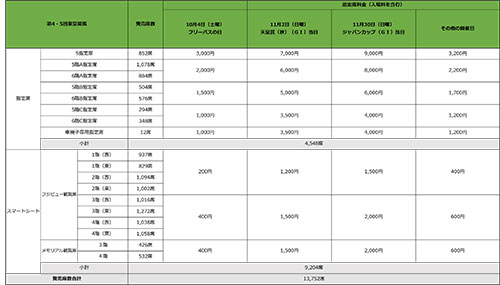 競馬場指定席・スマートシート 料金表・マップ(10月2日(木曜)更新)