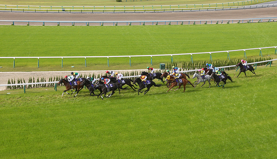 向正面半ばからスタートして外回りの3コーナーを目指す。程なく3コーナーの坂に差し掛かるが、先はまだまだ長いので、ゆっくり上ってゆっくり下るのがセオリーだ。