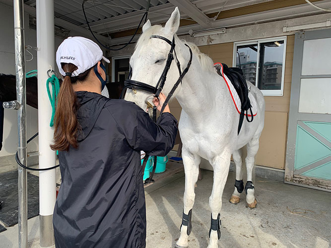 - 騎乗前後に馬の手入れをします。