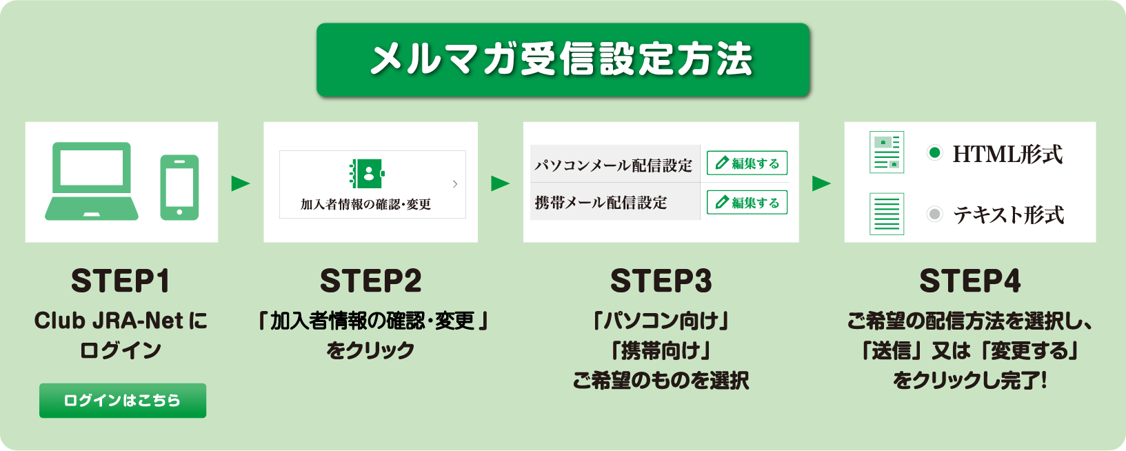 ・本キャンペーンは、JRA電話・インターネット投票会員の方で、Club JRA-Netへご登録いただいている方がご参加いただけます。Club JRA-Netを初めてご利用いただく際は、下記リンクより「新規登録」を行ってください。個人情報の取り扱いについて